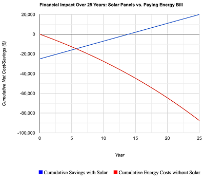 Financial Impact Over 25 Years: Solar vs. Paying Utility